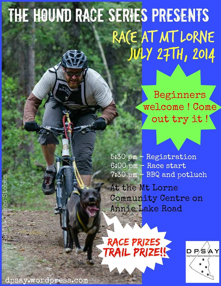 The race will start from the Mt Lorne Community Centre on Annie Lake road. We plan on having a 2 mile trail for bikejoring, and 1 mile trail for bikejoring and canicrossing.