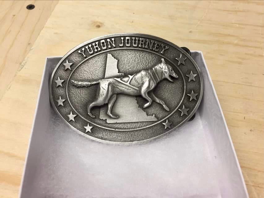 Work behind the scenes for the Yukon Journey is continuing. Didier Moggia, who many of you know from being involved in the races as a trail breaker has also been working hard on making the Yukon Journey a reality. Take a look at these cool belt buckles he has designed and produced: The mushers will get one for finishing the race. To the public they are also available for purchase for $ 100 to help out the race.